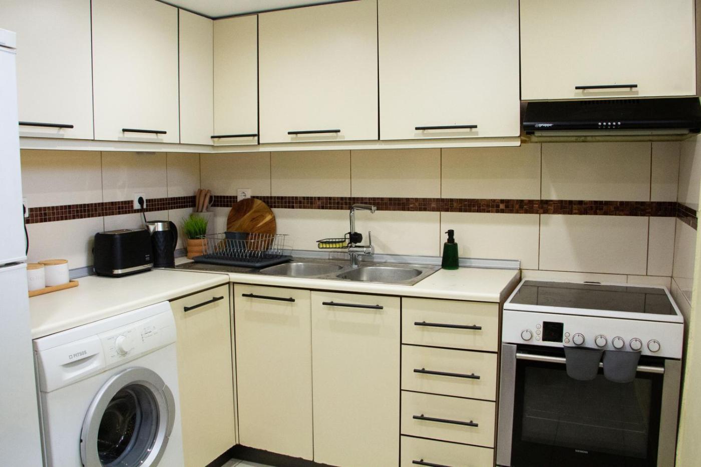 Two-Bedroom House. Boasting a private entrance, this air-conditioned holiday home comes with 1 living room, 2 separate bedrooms and 1 bathroom with a shower and a hairdryer. Guests can make meals in the kitchen that features a stovetop, a refrigerator, kitchenware and an oven. Featuring a terrace, this holiday home also features a washing machine, a tea and coffee maker and a flat-screen TV with satellite channels. The unit has 4 beds.