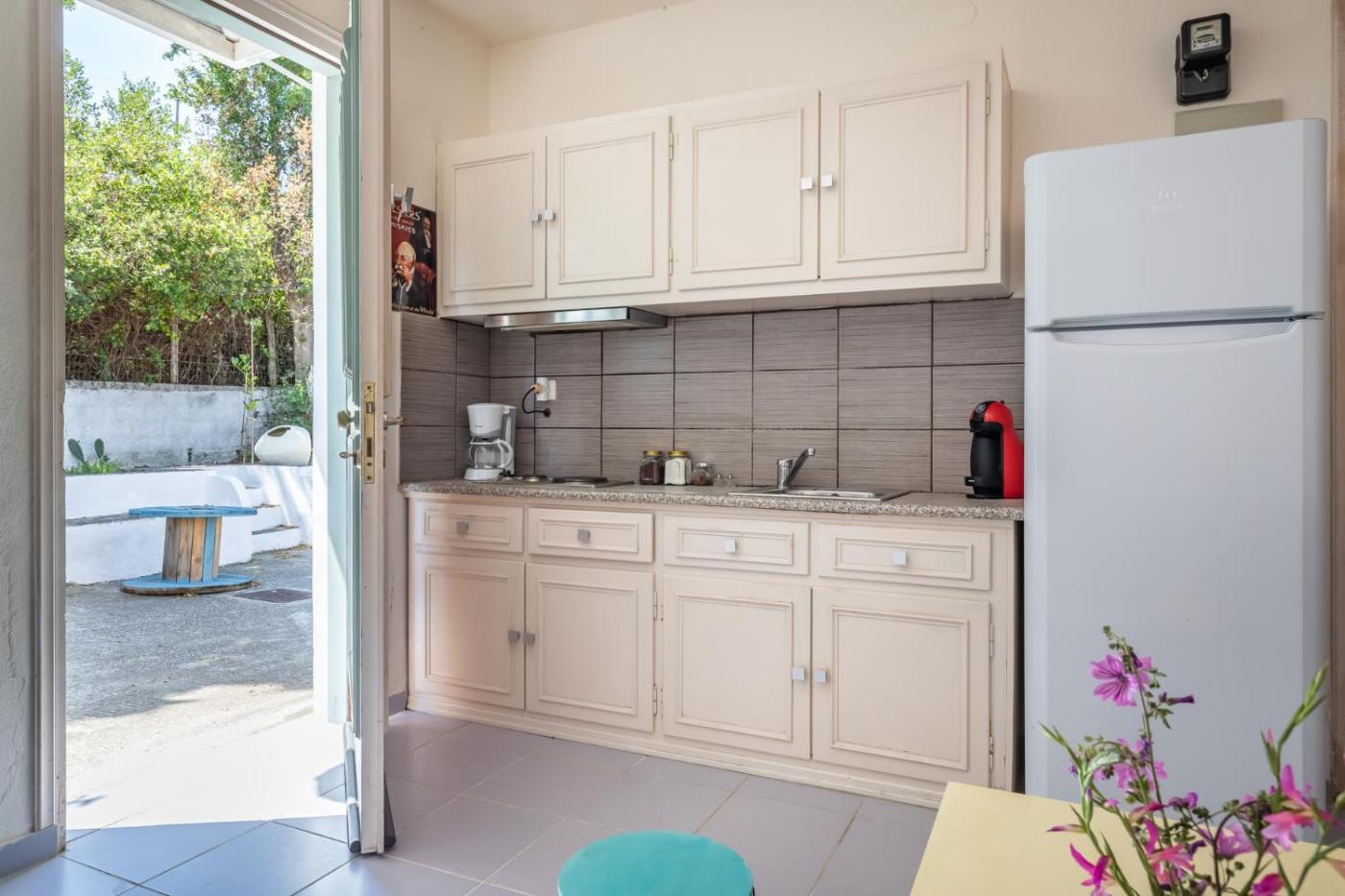 Apartment - Ground Floor. This air-conditioned apartment includes 1 living room, 1 separate bedroom and 1 bathroom with a shower. Guests can make meals in the kitchenette that is fitted with a stovetop, a refrigerator, kitchenware and an electric kettle. Boasting a terrace, this apartment also offers a seating area, a wardrobe and a flat-screen TV. The unit has 1 bed.